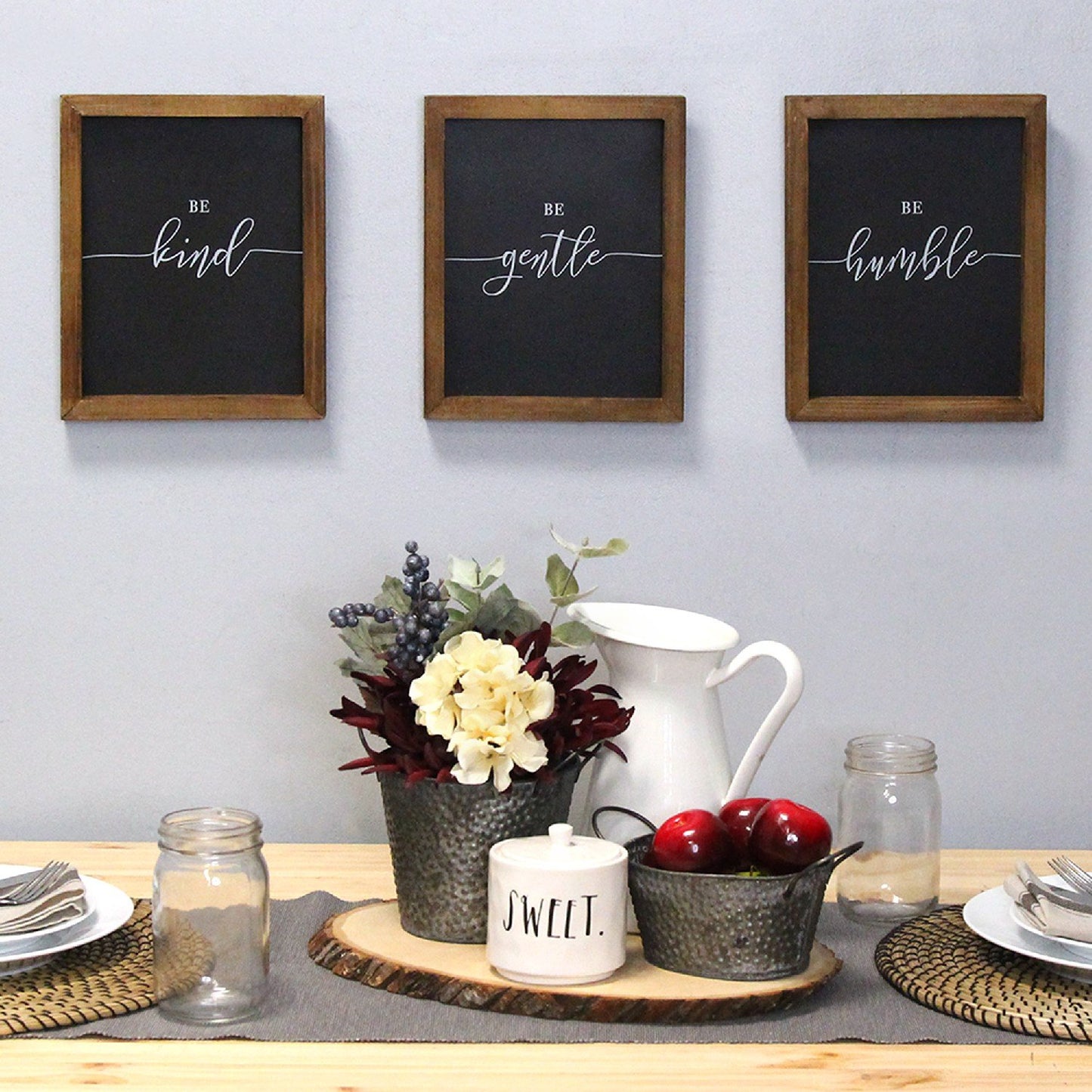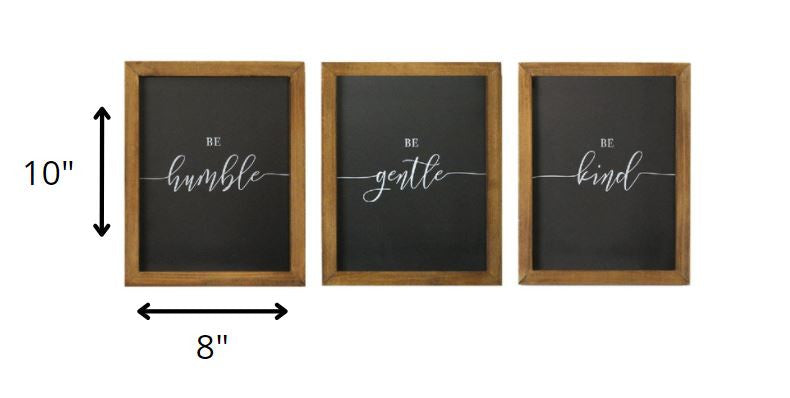 Set of Three Be Kind Be Gentle Be Humble Brown Wood Frame Wall Decor