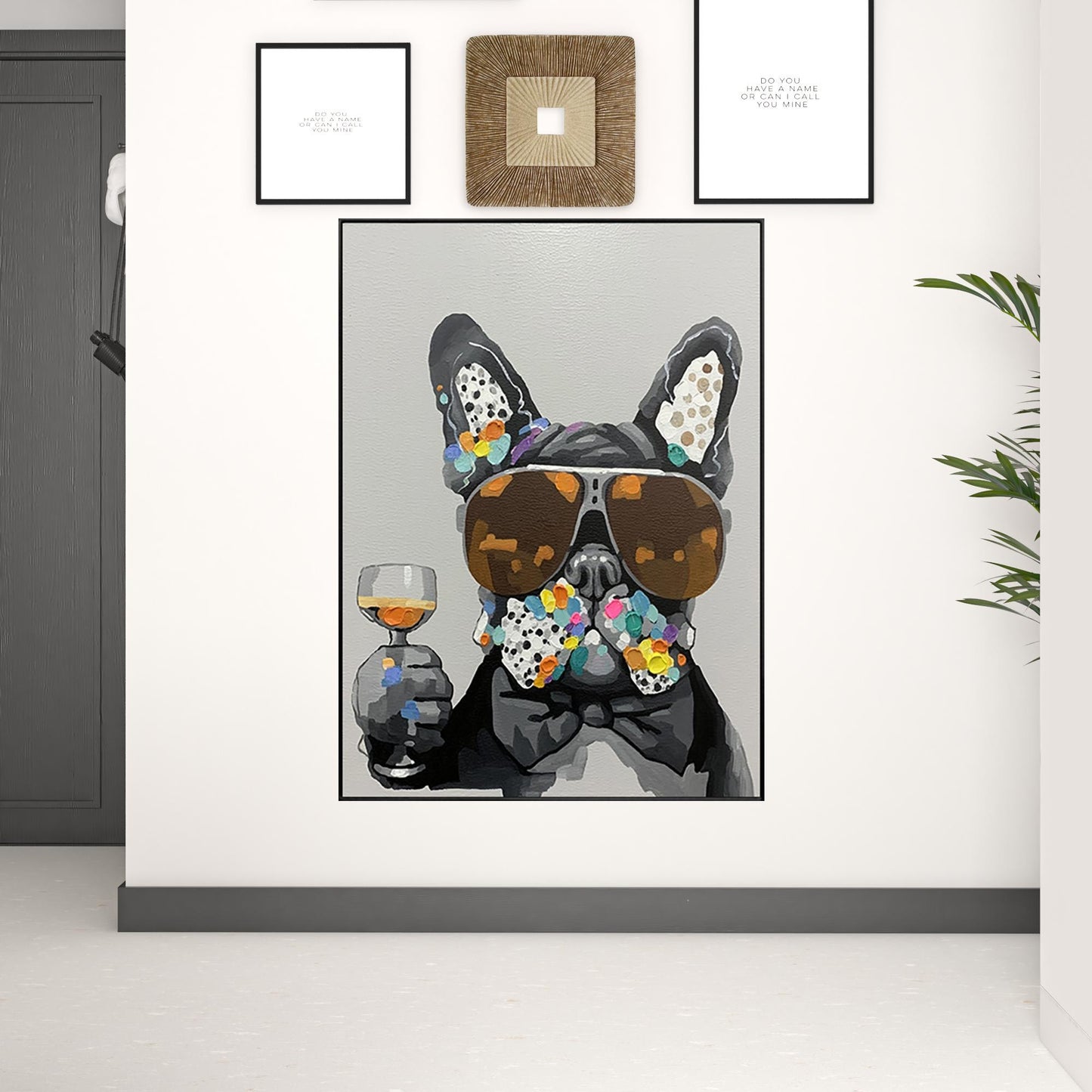 The black and white fabric dog wall decor is the perfect decorative accessory for your home. This dog artwork is a great reminder of man's best friend. Hang on your wall to add some up to date fashion and decoration. Instantly liven up your space with this art that brings color and dimension to your walls. 48-inch H x 32-inch W x 3-inch D