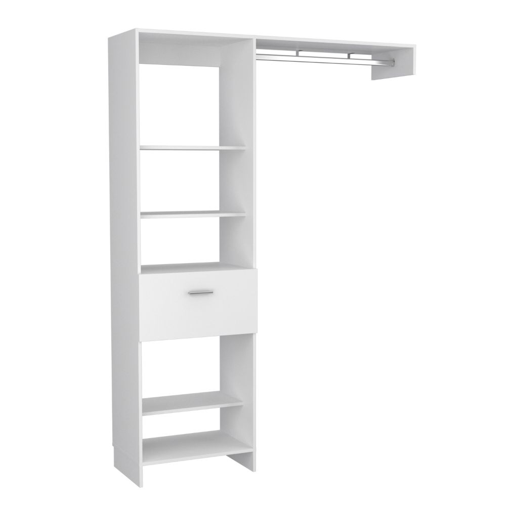 150 Closet System British, One Drawer, Three Metal Rods, White Finish