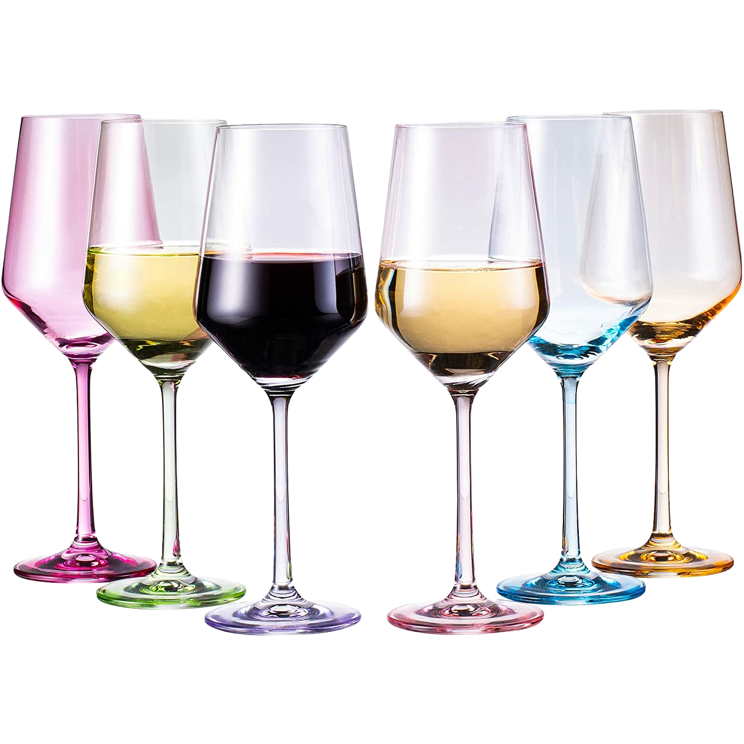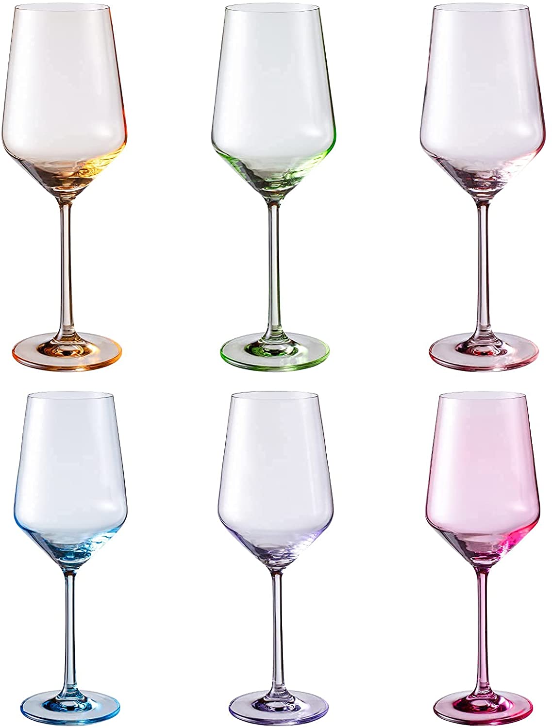 Colored Crystal Wine Glass Set of 6, Large Stemmed 12 oz Glasses, Great for all Occasions & Special Celebrations Unique Italian Style Tall Drinkware for Red & White Wine, Water Dinner, Color Glassware