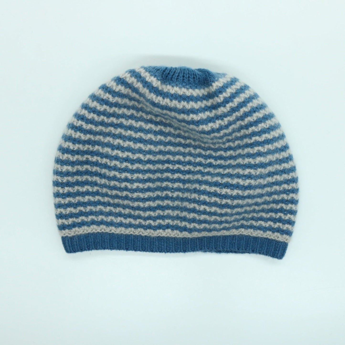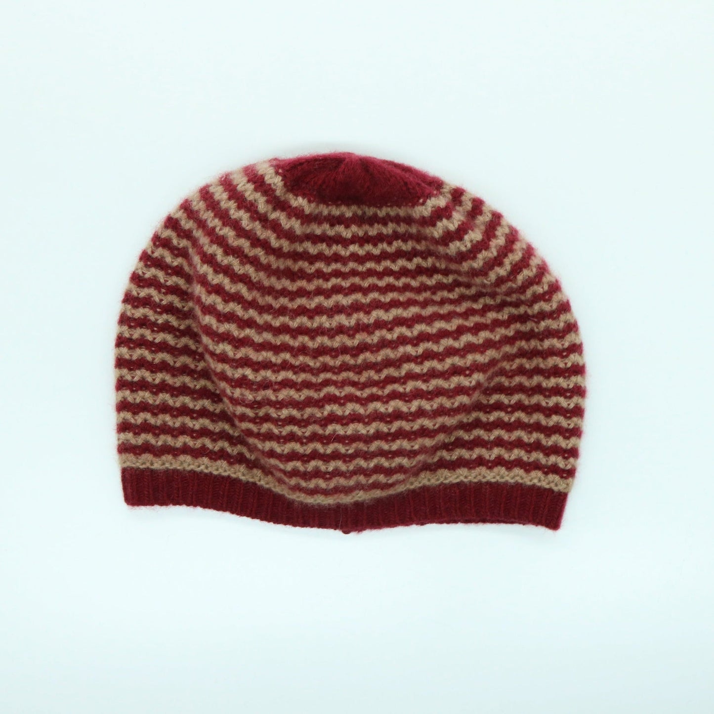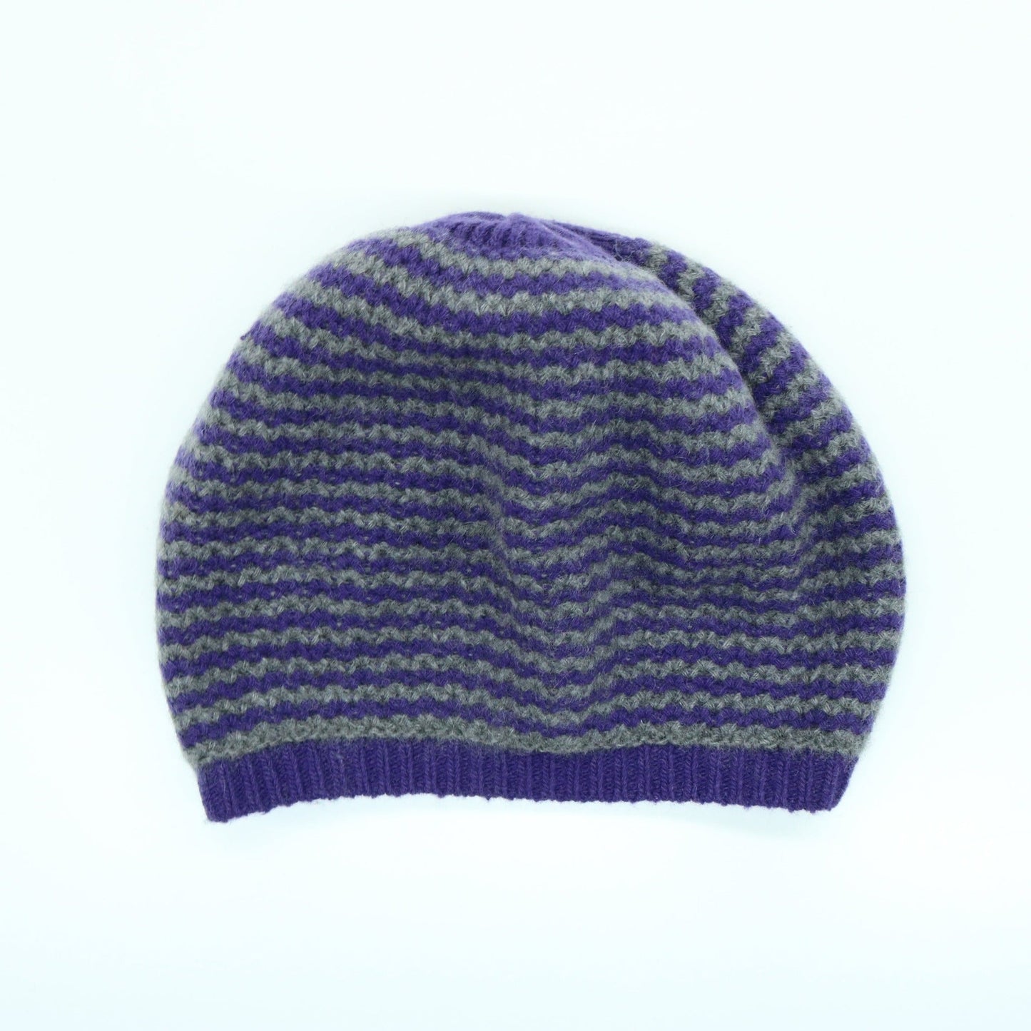 Cashmere slouchy hat in all over stiped honeycomb stitch . Make a statement in this oh-so-cozy cashmere hat, with a stylish striped honeycomb stitch. It's a perfect way to top off any look!
