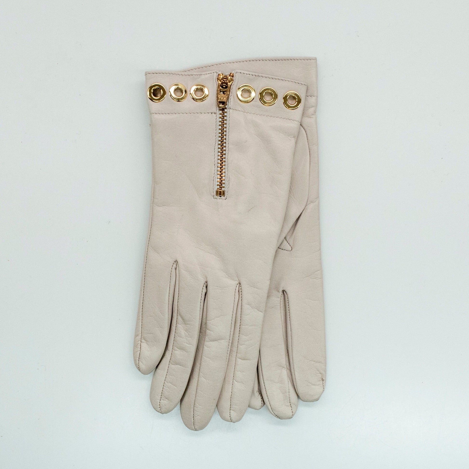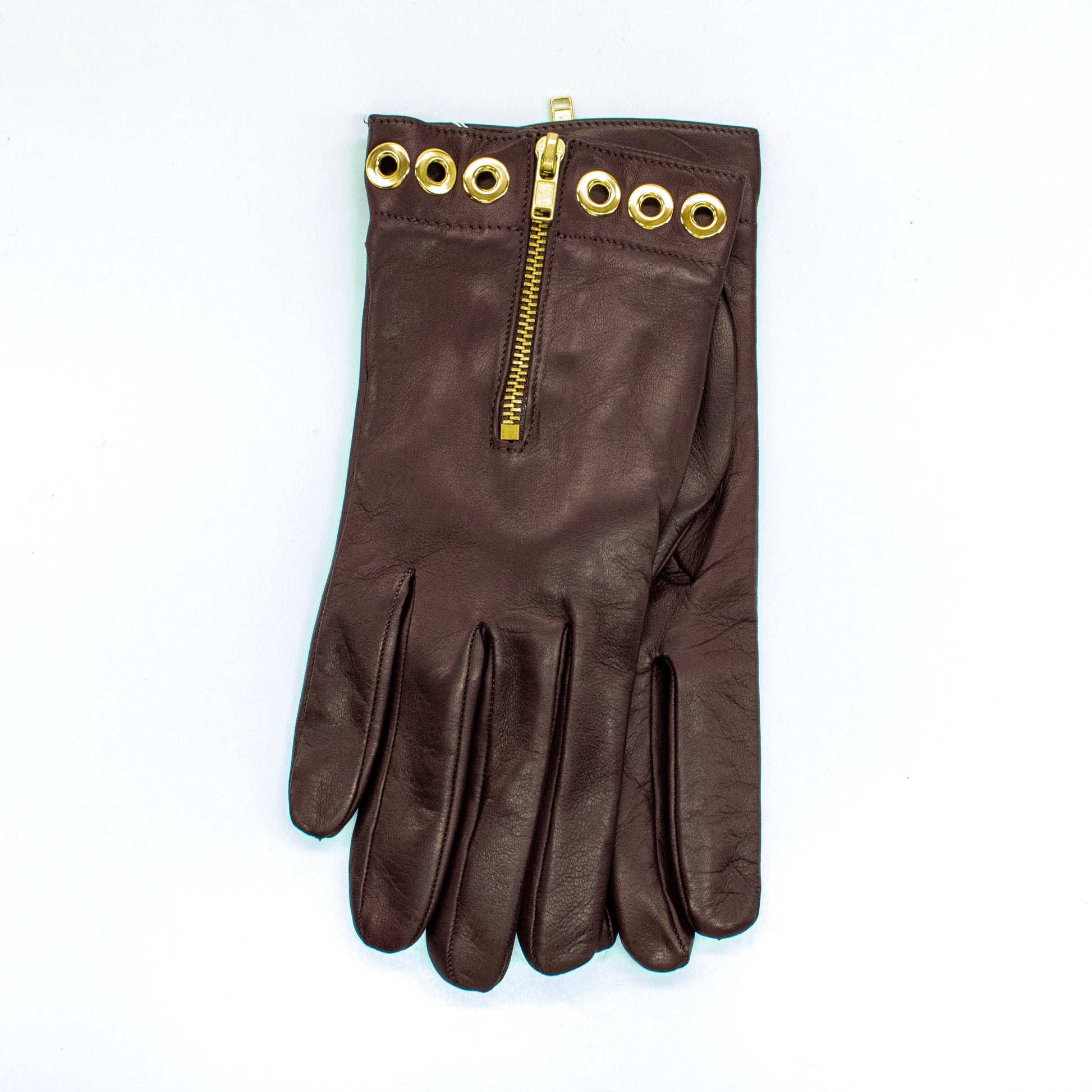 Nappa leather gloves with zipper and gold eyelets details
