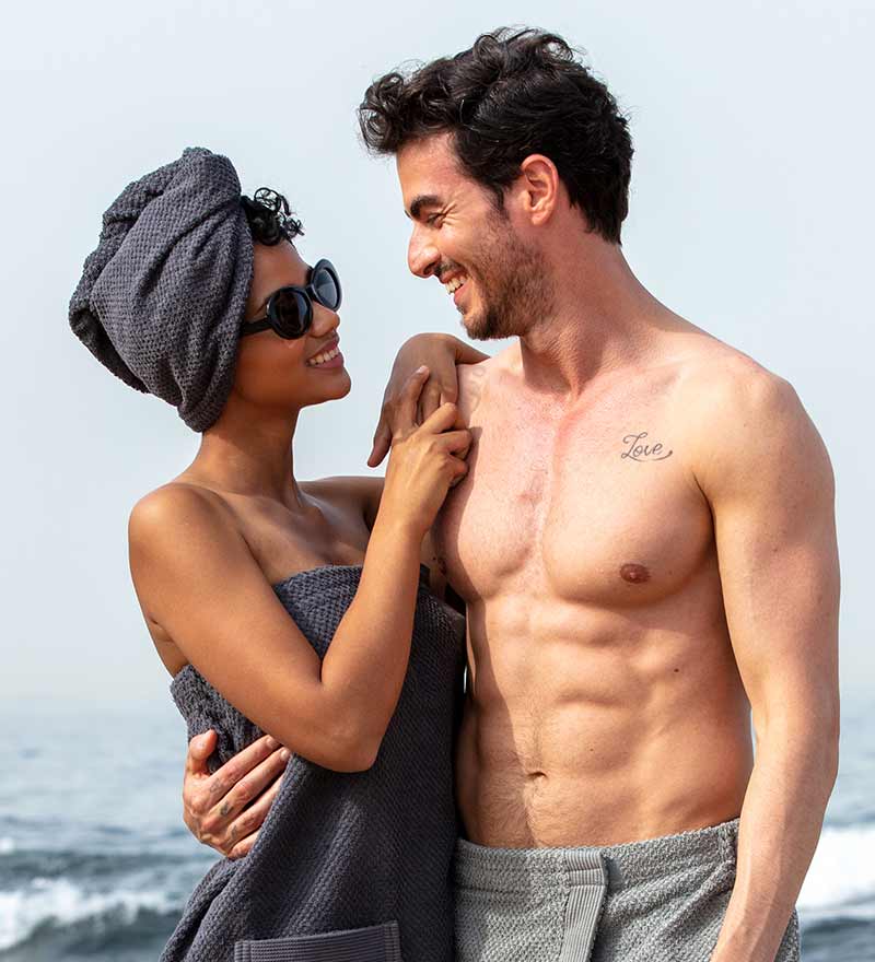 These cotton hair wrap towels also secure your hair with a convenient button closure. Plus, you get to move around comfortably and in style. That's why our hair turban towels are an excellent accessory to take with you to the spa and even the beach.