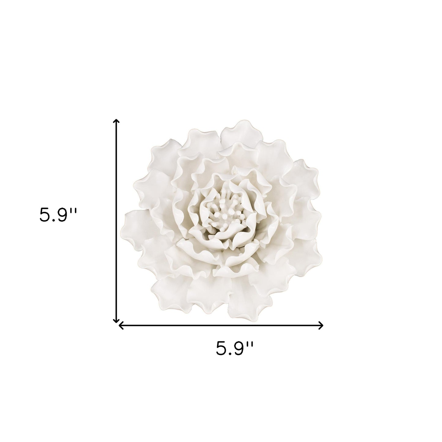 Enhance the beauty of your home with this Off White sculptural three dimensional ceramic flower hanging wall decor. Add a natural element to your home and grace your space with this neutral and calming color and texture. The intricately constructed floral petals ooze a realistic appeal that will add dimension to the walls while the soft cream tone effortlessly adds a modern and contemporary vibe to your space. A great way to bring a bit of nature indoors to compliment your style. 5.9-inch H x 5.9-inch W x 2.8-inch D