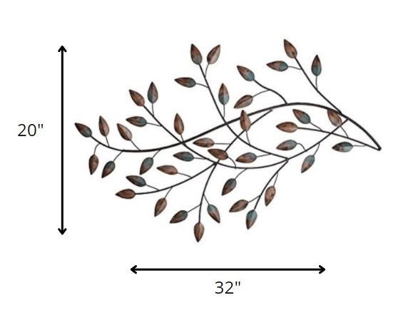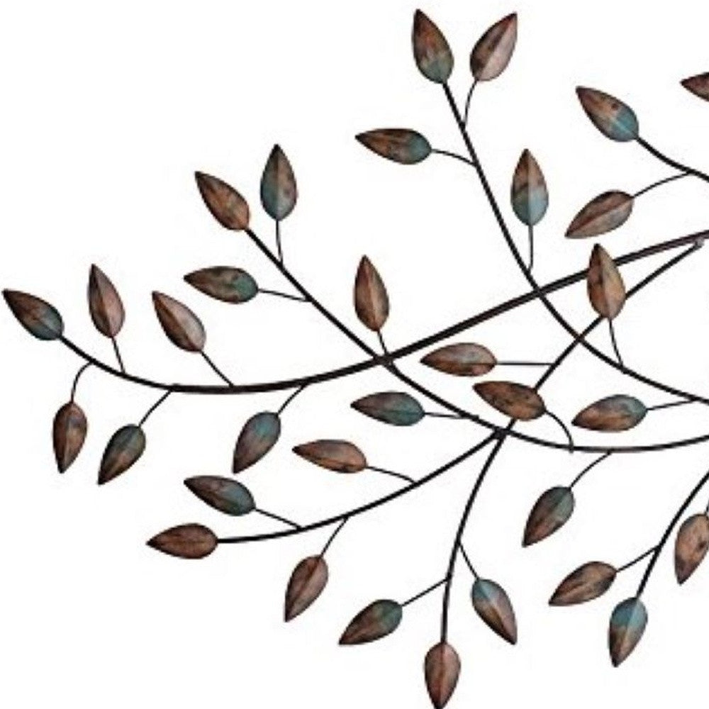 Solidify the beauty of your chamber with this well-crafted blowing leaves wall decor. Our handcrafted metal wall art is designed to create scenic atmosphere that will constantly showcase a charming piece that warms the heart. It features a profile detailing metal blowing leaves with a touch of distressed blue and brown that adds enduring style to any room. Transitional style Handcrafted of metal Comes ready to hang Attached keyhole hanging method Horizontal hanging orientation Wipe clean with damp cloth. It measures 32" X 1" X 20".