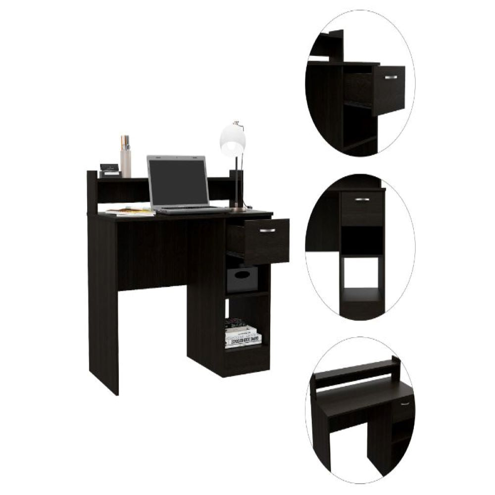 Computer Desk Delmar with Open Storage Shelves and Single Drawer, Black Wengue Finish