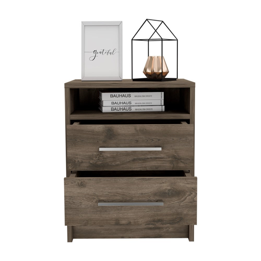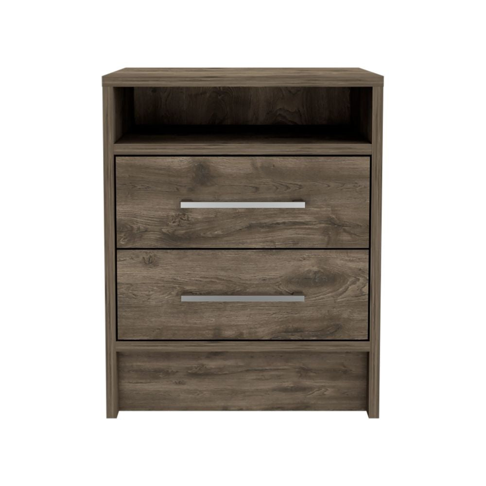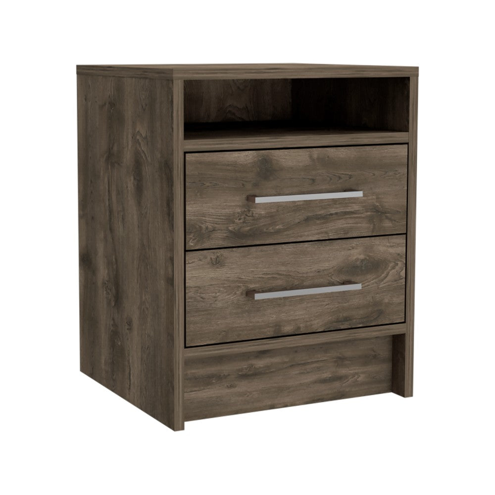 Nightstand Cartiz, Two Drawers, Dark Brown Finish