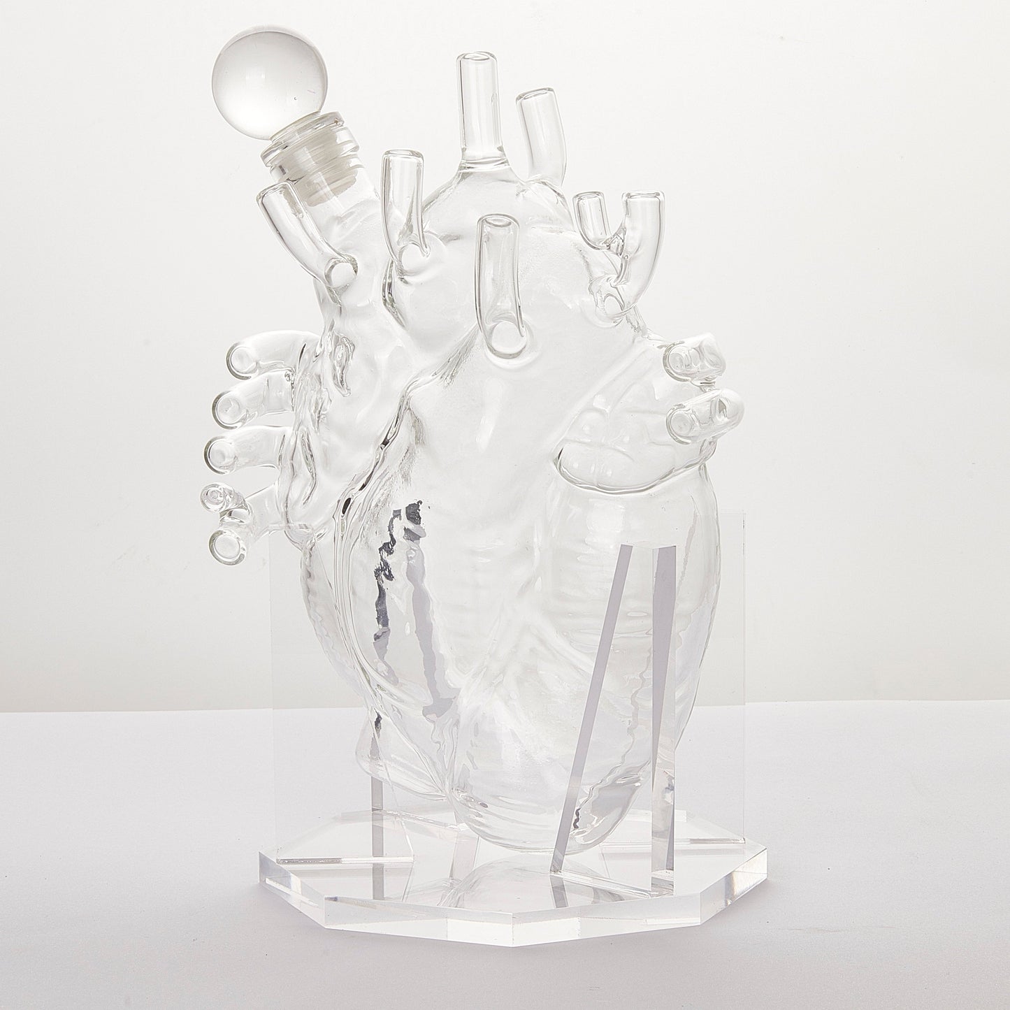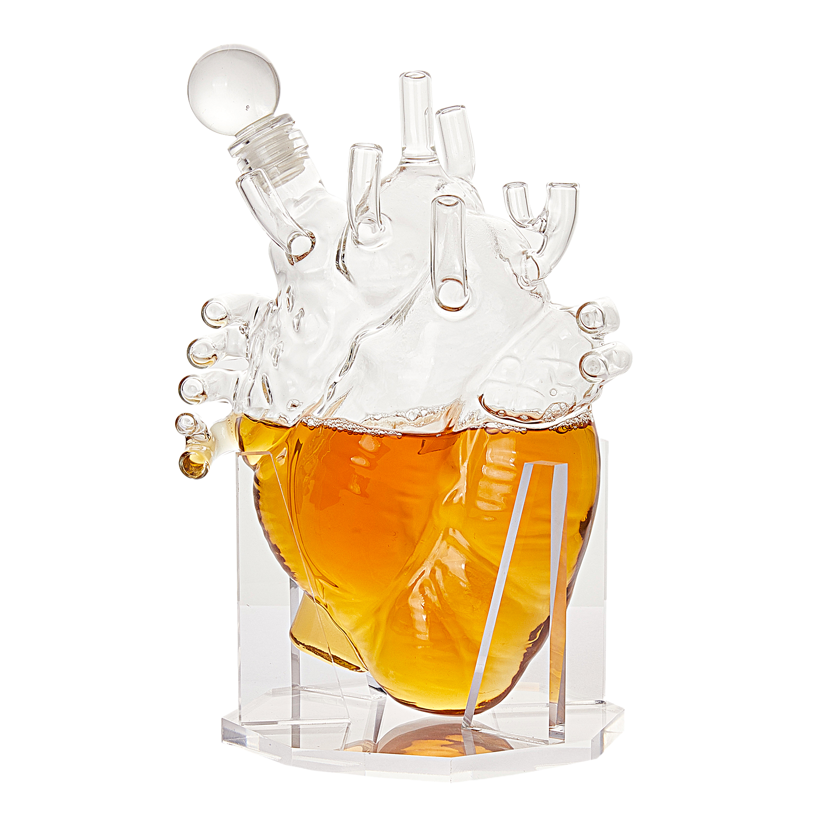 - Both charming and full of class, the Heart Decanter is a must have for the biologist, doctor, surgeon or anyone that just wants to add more luxury to their homes décor. This gorgeous designer decanter looks great on any counter or table. Measuring approximately 10.3" in height and holds 750ml of your favorite beverage! Adding class to your home, this Realistic Heart will stand out from all other glass decanters.