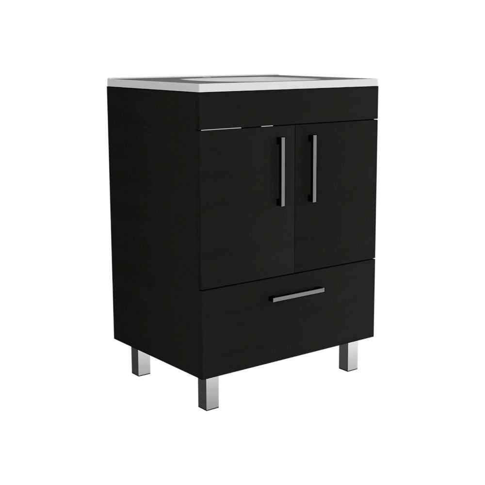 Mayorca Single Bathroom Vanity, its contemporary and ergonomic design fit any bathroom, even the smallest, it offers a vast storage capacity and a two-door cabinet with one drawer (22.4''W X 15.5''H) to keep your items safe and the perfect countertop (29.5'') Specifically designed to tolerate the bathroom's dampness. Includes exquisite metallic accent is included. ***FAUCET NOT INCLUDED***. Designed with elegant black wengue manufactured wood finish.