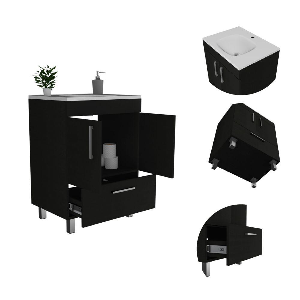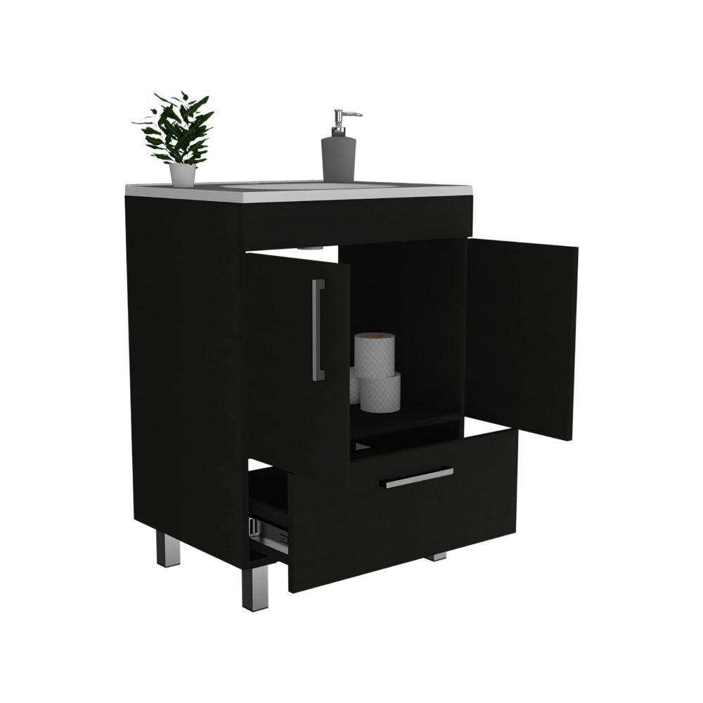 Single Bathroom Vanity Mayorca, Double Door Cabinet, One Drawer, Black Wengue Finish