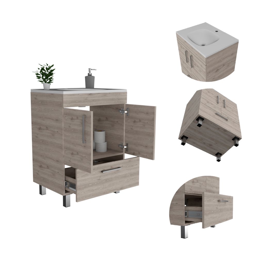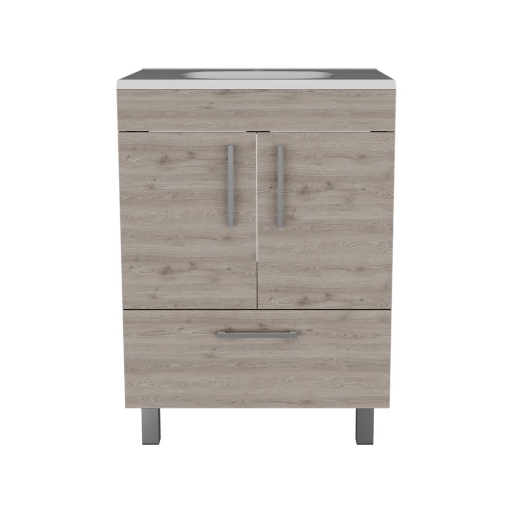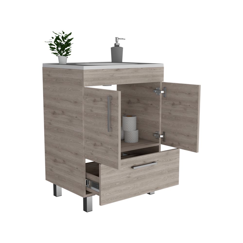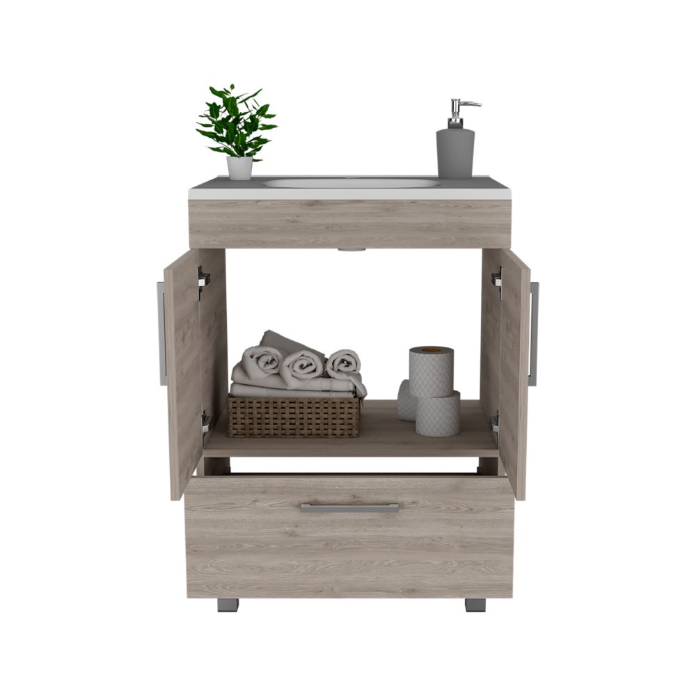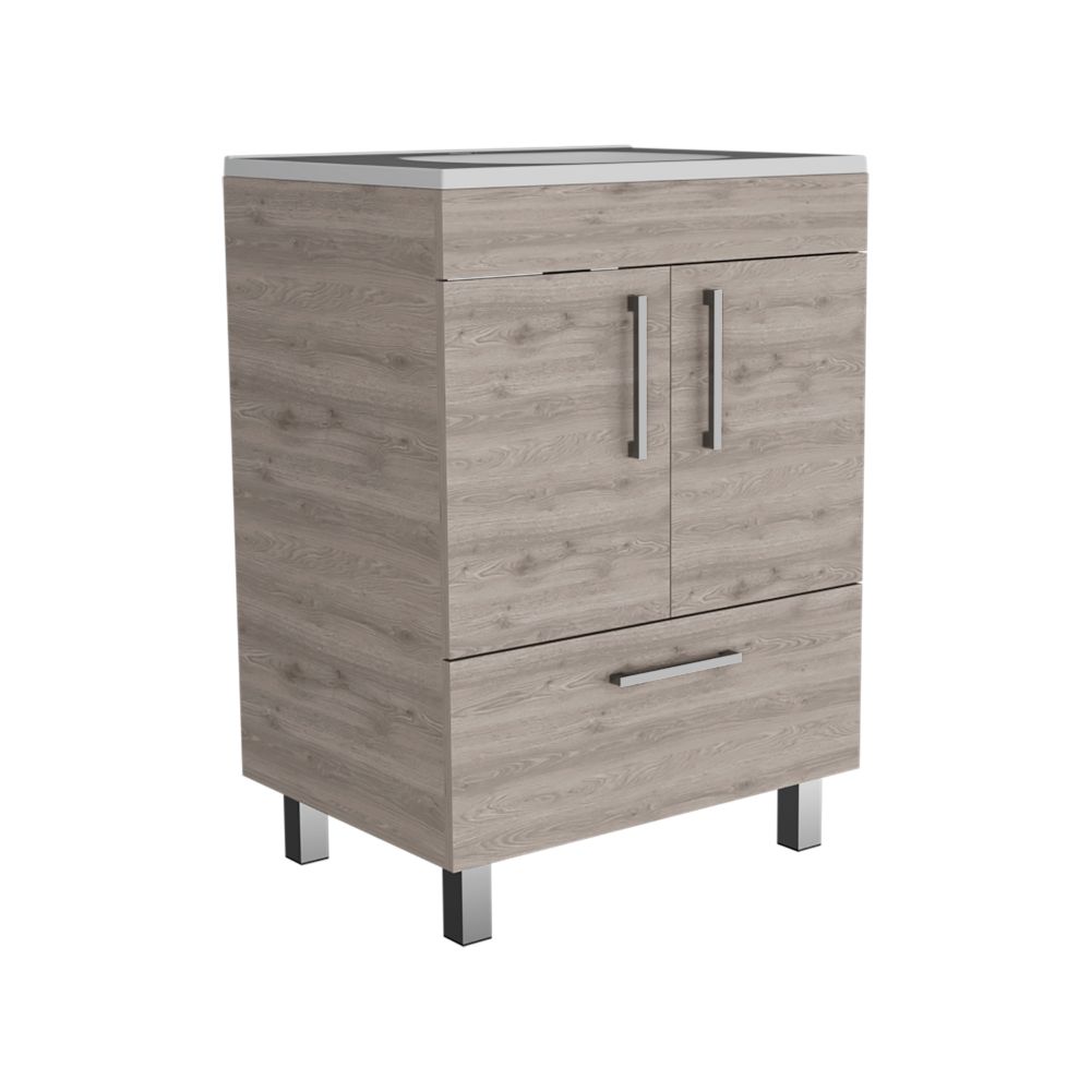 Single Bathroom Vanity Mayorca, Double Door Cabinet, One Drawer, Light Gray Finish