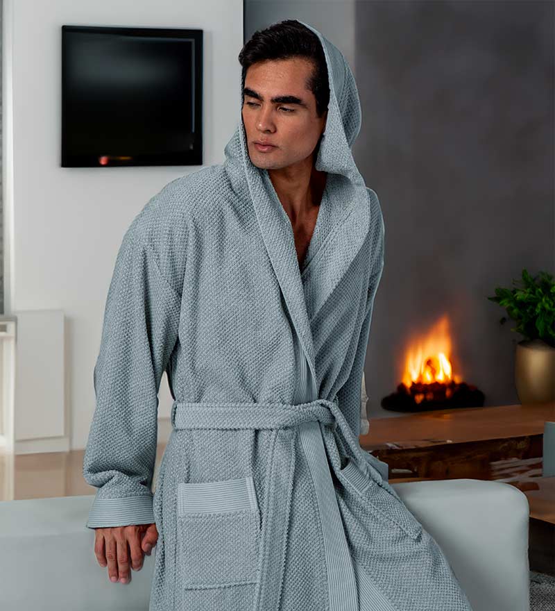 Feel how this Turkish Cotton terry robe gently caresses your body after a long day of work. This hooded terry cloth robe designed to be comfortable and look elegant. Perfect gift for men who likes to relax and get ready for the next day.