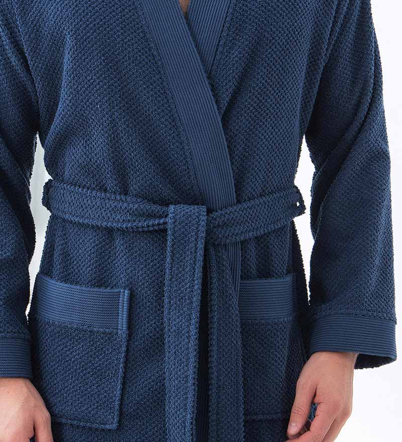 Enjoy relaxing moments in evenings with this Turkish Cotton Terry Cloth kimono robe for men. An elegant luxury robe for men deserving high-quality garments. A stylish gift for the man you value most.