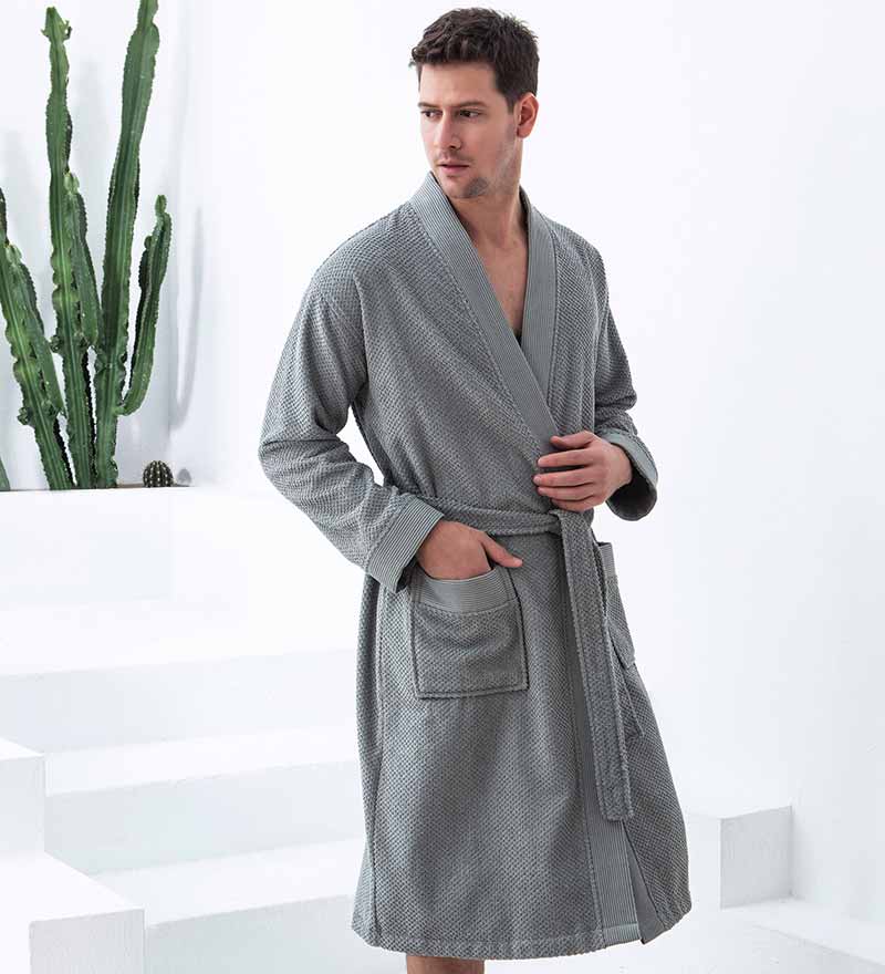 For those evenings when you want to put on a comfortable garment to relieve the day's stress, this men's kimono robe comes to your rescue. The finest Turkish Cotton weaved with generations of expertise will wrap your body keeping you warm and cozy. Experience the relaxing feeling of this terry cloth kimono robe. Having a tie belt, shawl collar, and pockets, this luxury kimono robe will be your everyday loungewear. This men's kimono robe can also be used as a bathrobe. Perfect for gifting to your friends, family and loved ones.