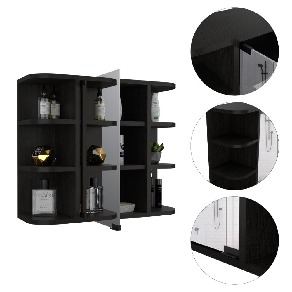 Medicine Cabinet Milano,Six External Shelves Mirror, Black Wengue Finish