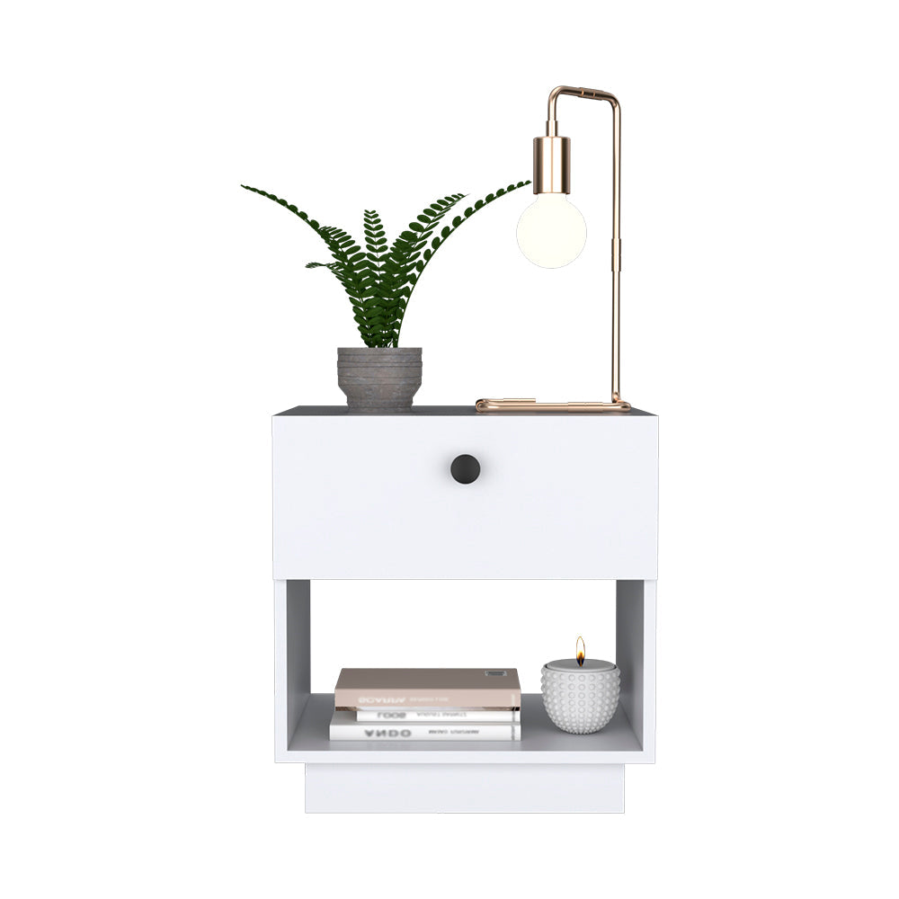 The Viliigili nightstand was designed with your bedtime comfort in mind, you can put your essentials in the comfortable drawer, size (4" H x 15.1" W), and your favorite books on the spacious shelf, size (10" H x 17.3" W). Not only a perfect nightstand with a drawer for a bedroom but also the best choice for your living room or sitting next to a comfortable recliner or couch, keeping your laptop, and readings coffee at hand. Designed with an elegant white manufactured wood finish.