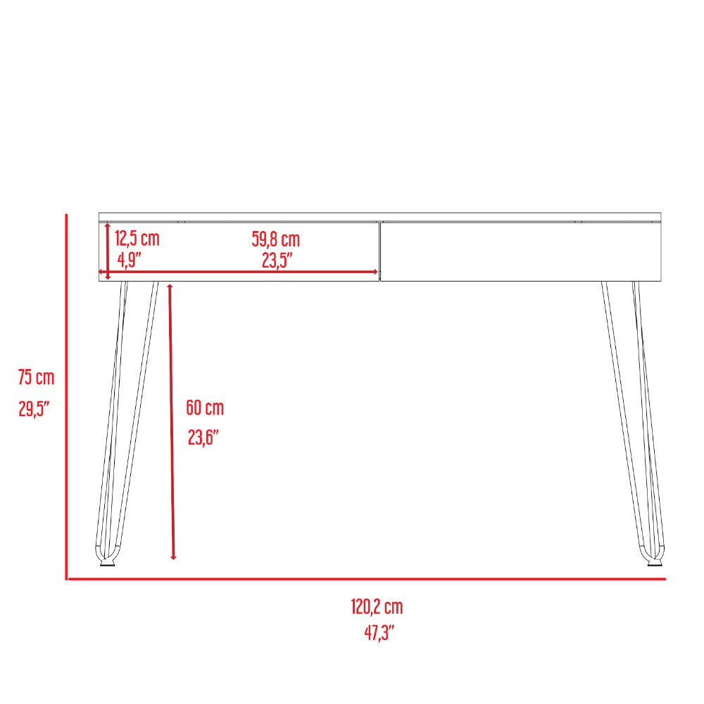 The Hinsdale Desk is a modern design that will give you an excellent option to set up your home office. Its compact sketch gives your space a touch of elegance. Modern styling in a compact design, stylish long metal legs give it a beautiful look, and two spacious drawers below the work surface are perfect for storage. Designed with an elegant smokey oak manufactured wood.