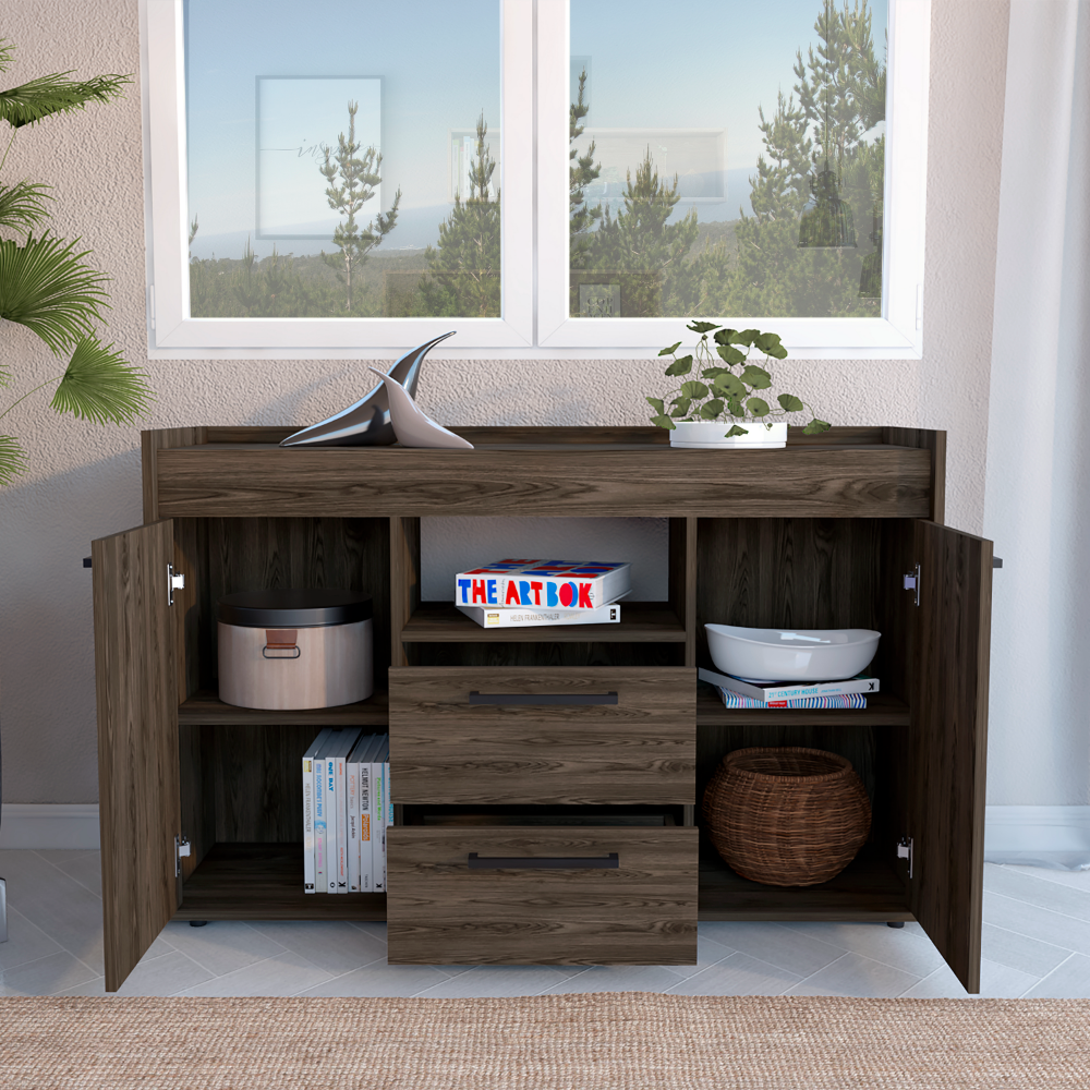 Sideboard Perssiu, Two Drawers, Double Door Cabinets, Dark Walnut Finish