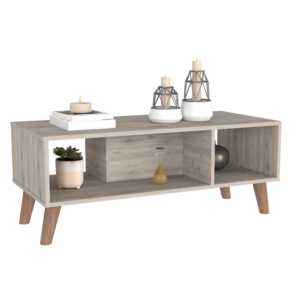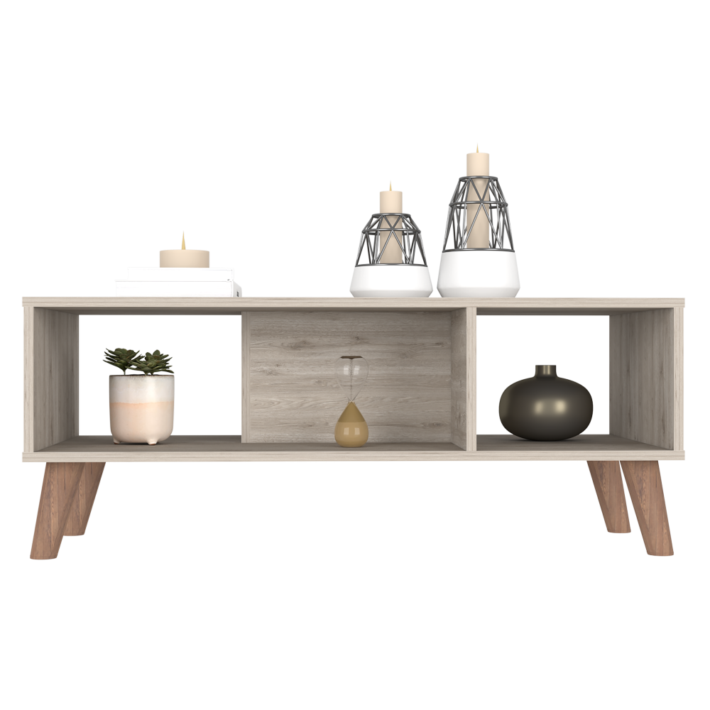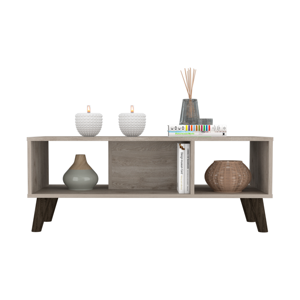 Coffee Table Plex, Two Open Shelves, Four Legs, Light Gray Finish