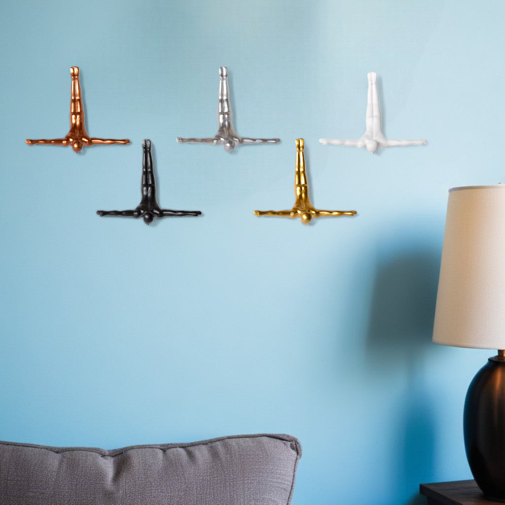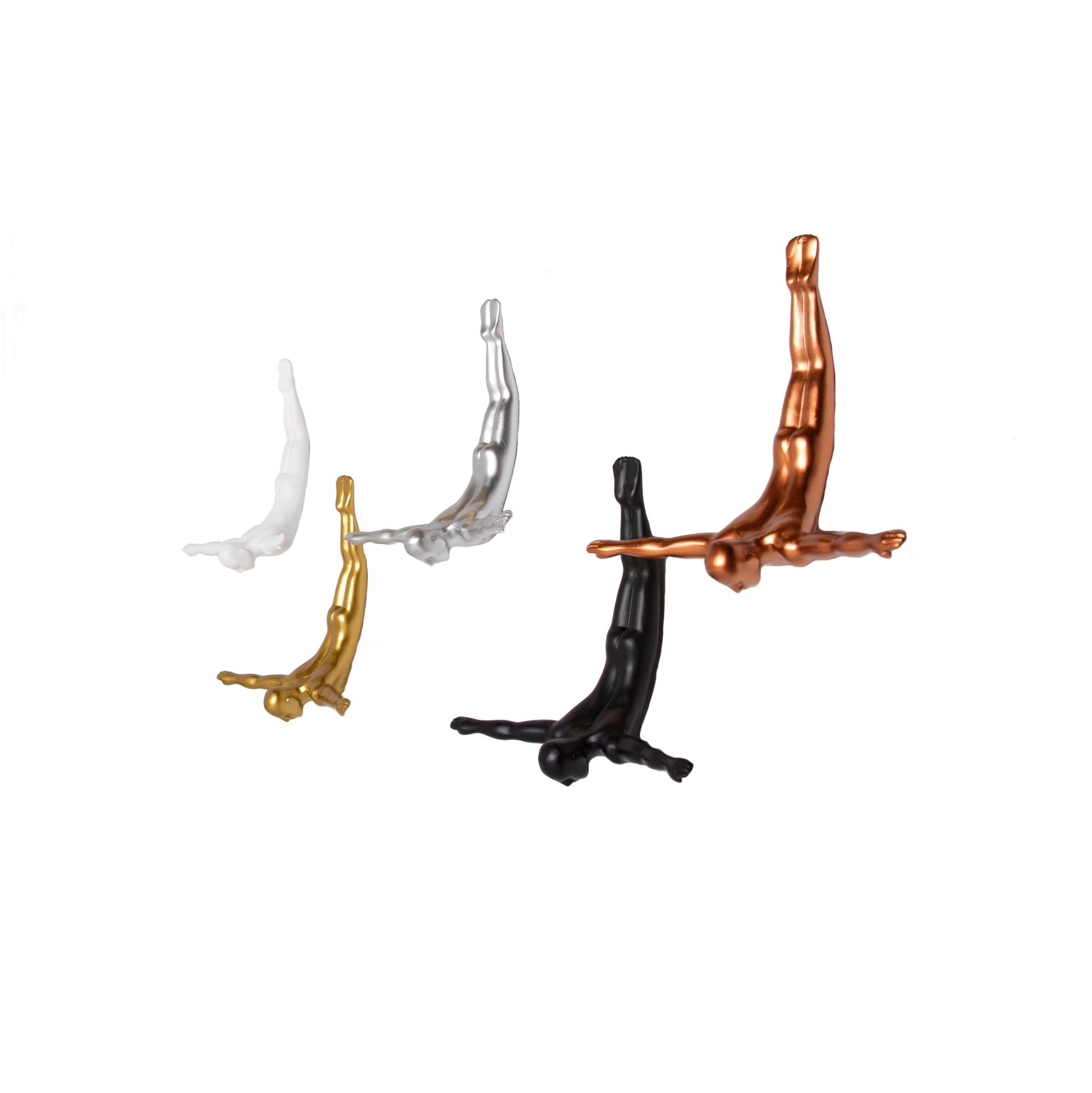 Enhance your room's ambiance with this truly unique resin wall decor set in a modern Black, White, Silver, Gold, and Bronze coloration. Elevate your living space effortlessly by incorporating these fun divers into your decor scheme. Crafted from high-quality resin, this eye catching three dimensional art gives the impression of a diver coming out of the wall. Add a touch of modern chic to your home with this captivating wall decor that is sure to impress your guests. 6.5-inch H x 6.5-inch W x 2.5-inch D