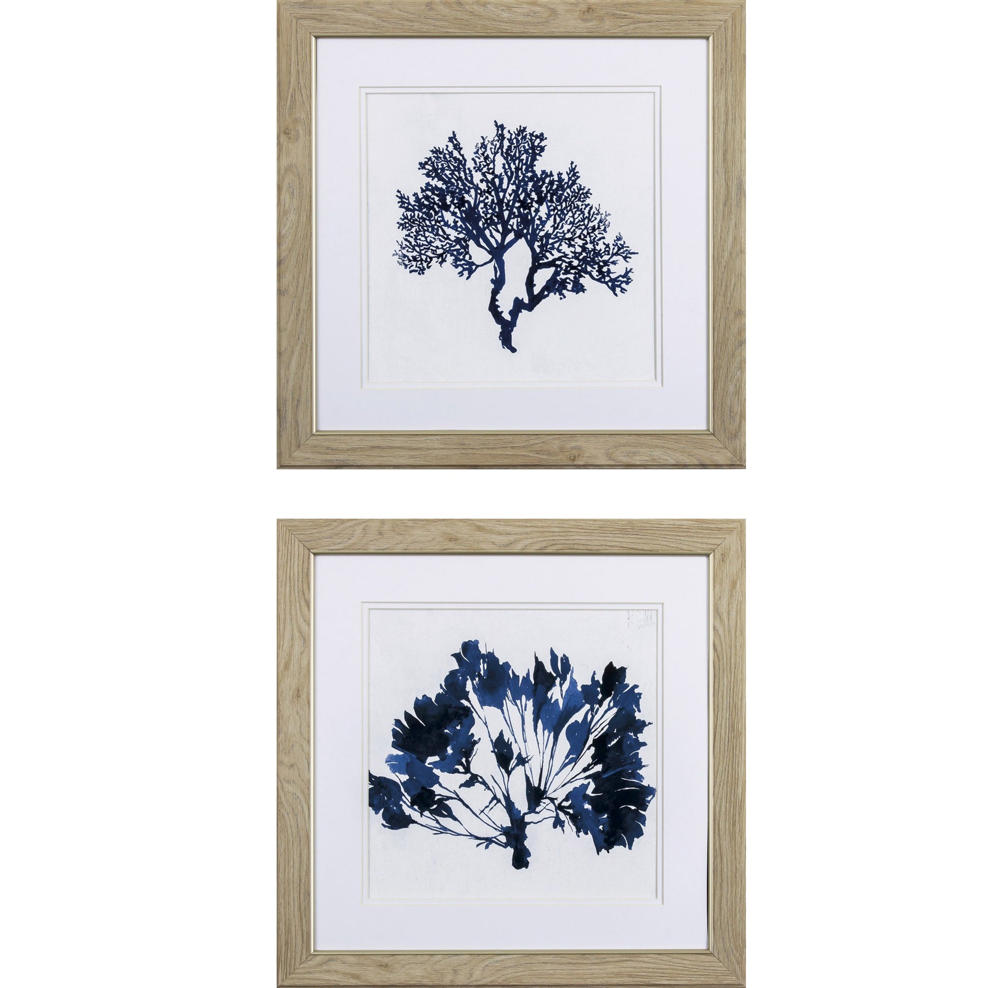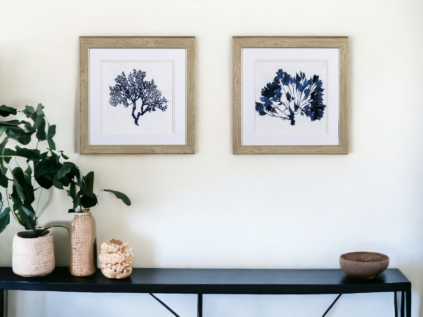 Set of Two Deep Blue Sea Coral Watercolor Wall Art