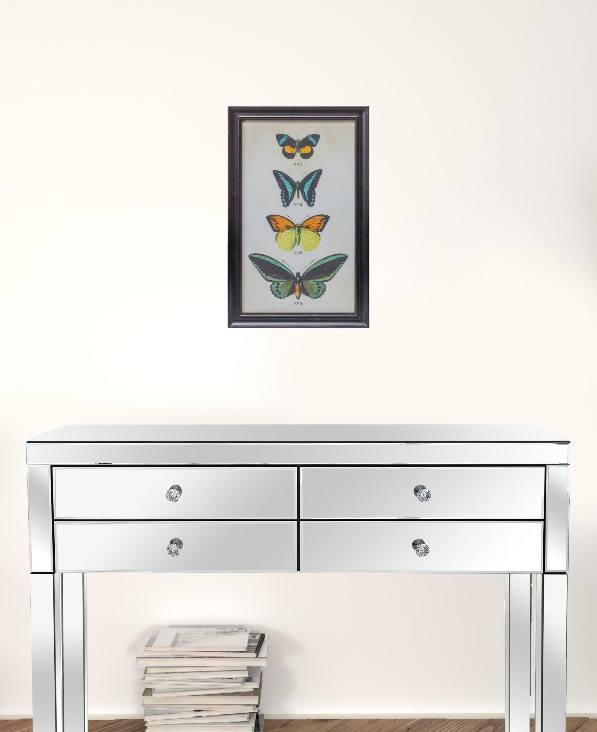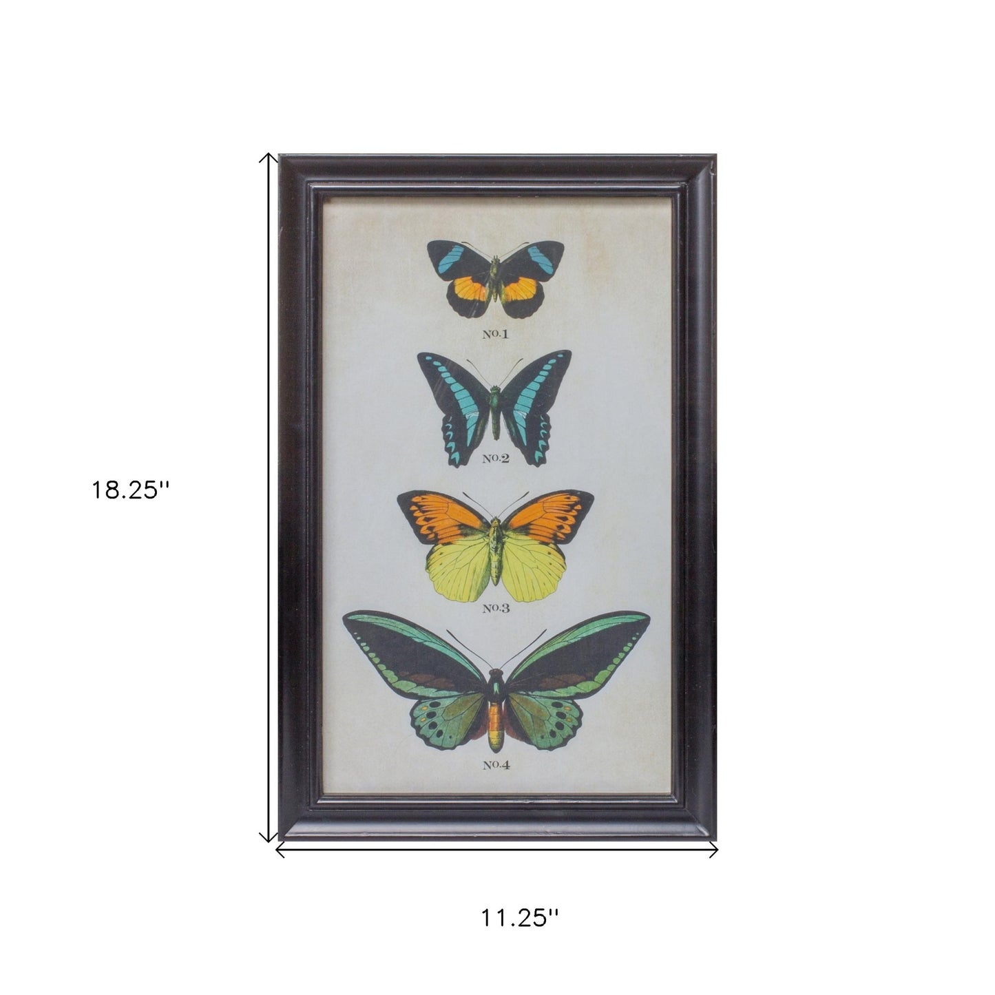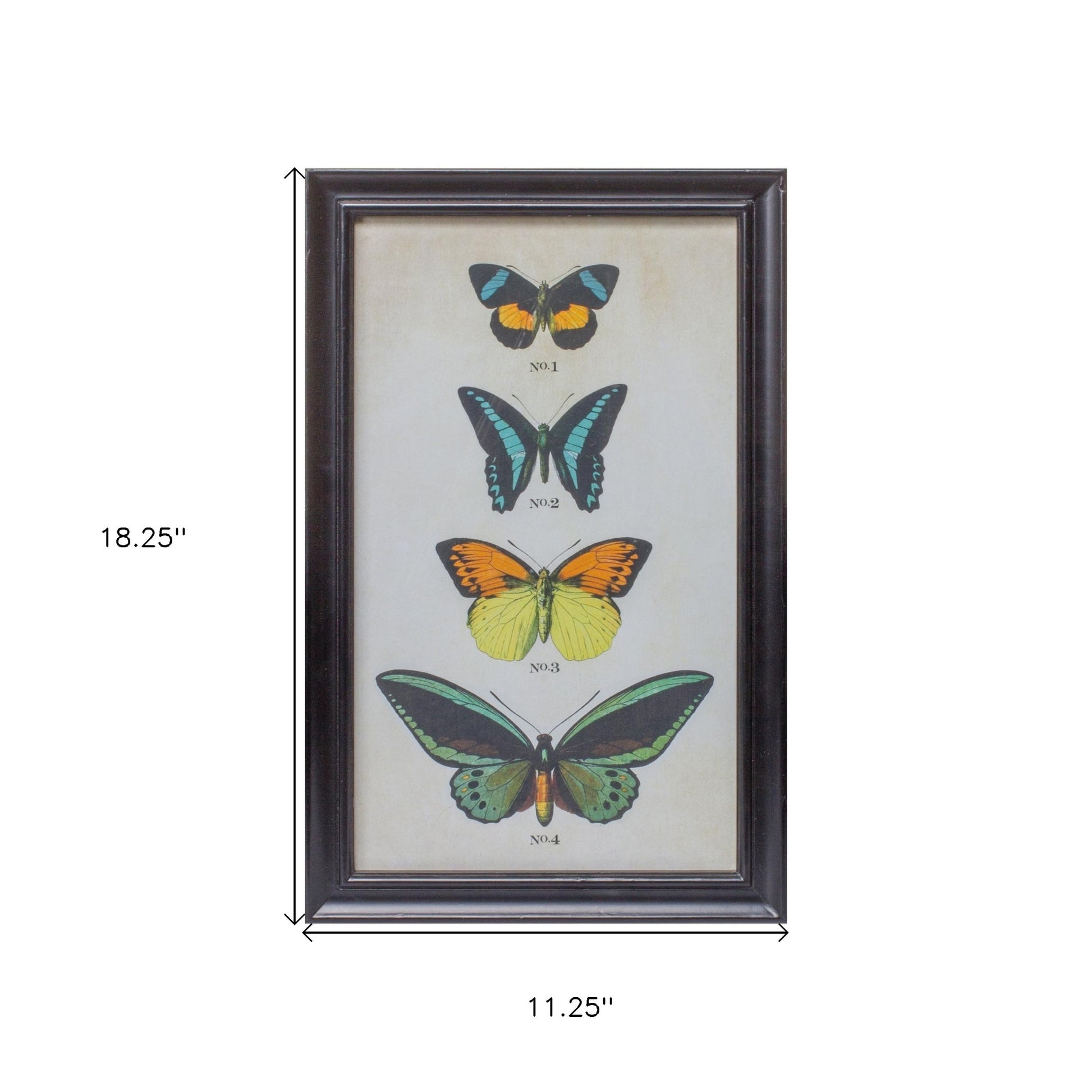 Unique and decorative, this set of two 18-inch x 11-inch black blue and green butterfly solid wood framed art will leave a lasting impression. Instantly liven up your space with this art that brings color and dimension to your walls. Inspired by one of nature's most revered icons, this pretty butterfly inspired artwork will be a beautiful and special addition to your room's decor. This good looking decor will fill the empty space on your wall while adding a stylish and decorative touch. Utilize this opportunity to create a focal point in the room with this fabulous wall decor option. 18.25-inch h x 11.25-inch w x 0.75-inch d