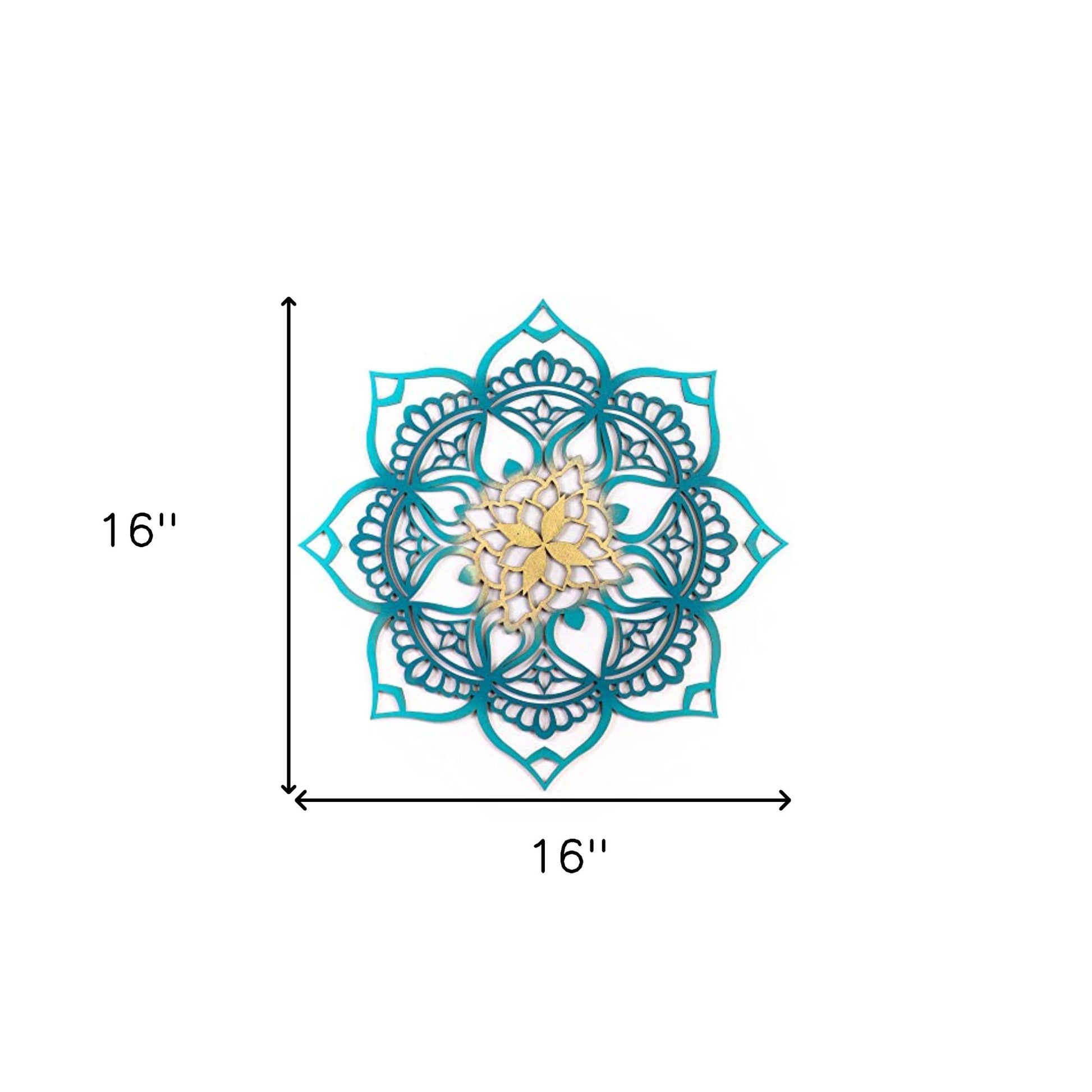 This Teal and Natural solid wood geometric shapes wall decor will add a beautiful decorative accent to your decor. This laser cut wood mandala will bring cool bohemian vibes to your space and be a unique and fun way to decorate your walls. Hang on your wall to add some up to date fashion and decoration. Utilize this opportunity to create a focal point in the room with this fabulous geometric wall decor option. 16" H x 16" W x 0.25" D