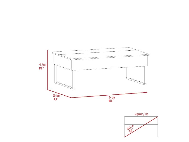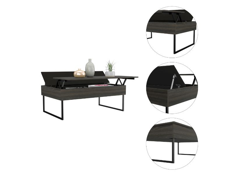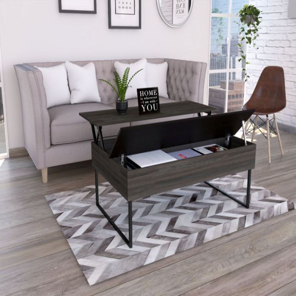 The Wuzz Lift Top Coffee Table's mobility and style work together, this modern coffee table will be the protagonist when you receive your guests to enjoy a pleasant time in your living room. It features a lift top with concealed storage, a spacious top surface (48.8" width x 30.4" depth), a woody design, and 4 reinforced metallic legs. Designed with elegant Smoky Oak manufactured wood finish.