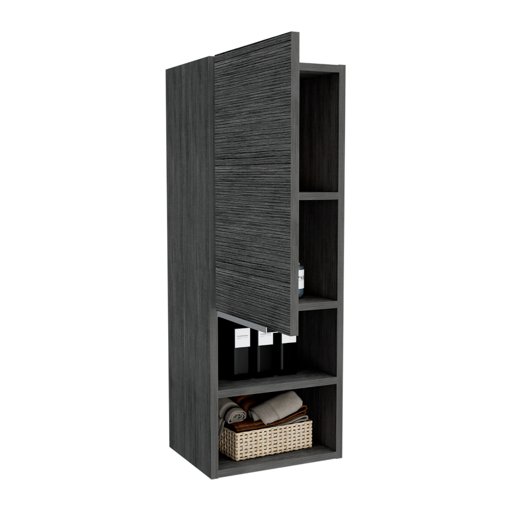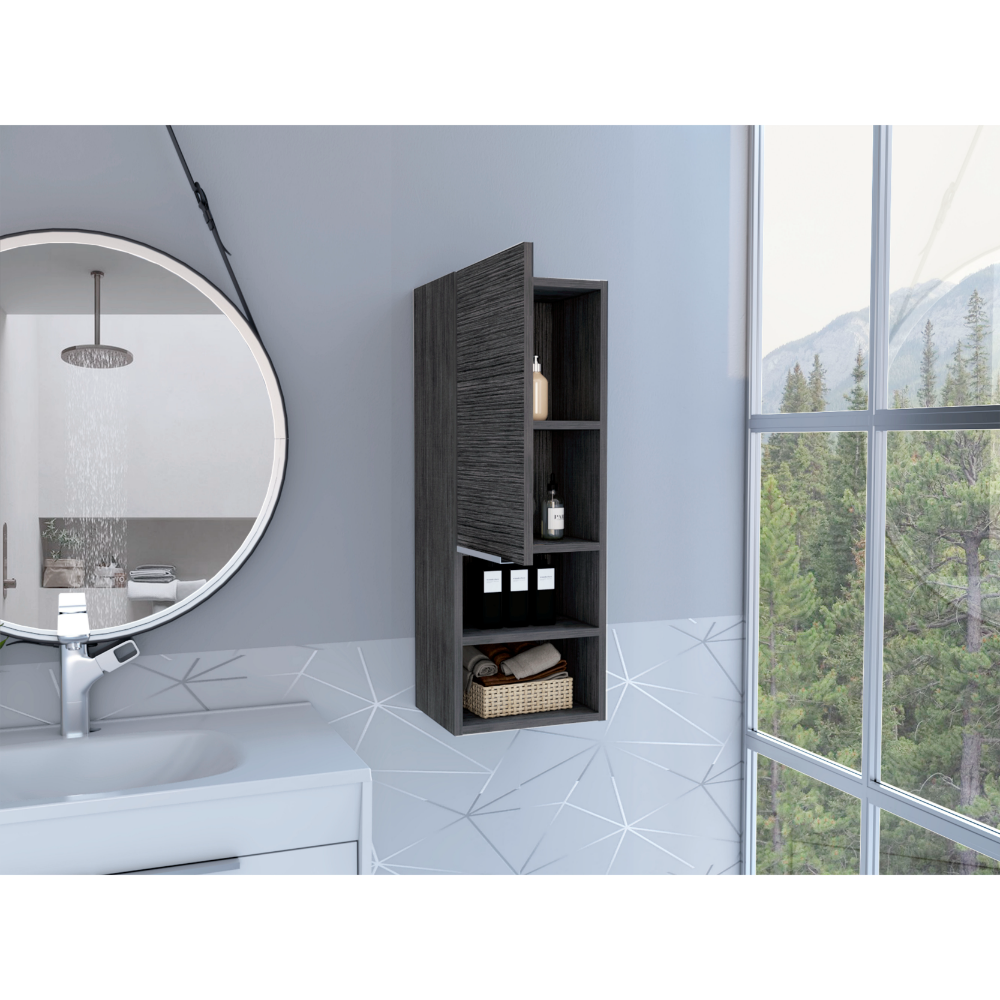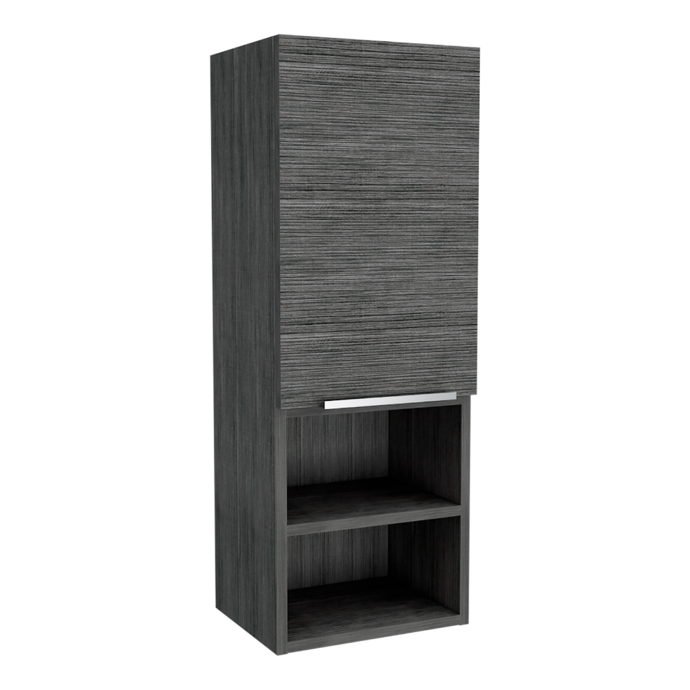 Hazelton Medicine Cabinet, this Bathroom Cabinet would look great on any bathroom wall. With its ergonomic dimensions, it is the perfect option to add storage to your bathroom, It offers a vast storage capacity with two open shelves (5,7'' H X 10,6''W) and a one-door cabinet with two interior shelves (8,2''H X 10,6''W) to protect your belongings, superior-top size (15,5''). The cabinet used bathroom humidity-resistant materials. Designed with an elegant smokey oak manufactured wood finish.